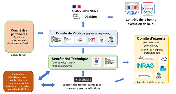 - l’article 2 de la loi Climat et Résilience[6] de 2021, qui remplace l’article 15 mais confirme que l’affichage environnemental s’appliquera « prioritairement pour le secteur du textile d’habillement ». Une phase d’expérimentation d’une durée maximale de cinq ans était prévue par l’article 2 de la loi Climat et Résilience afin de définir « la méthodologie à utiliser ainsi que les modalités d’affichage retenues »[7].