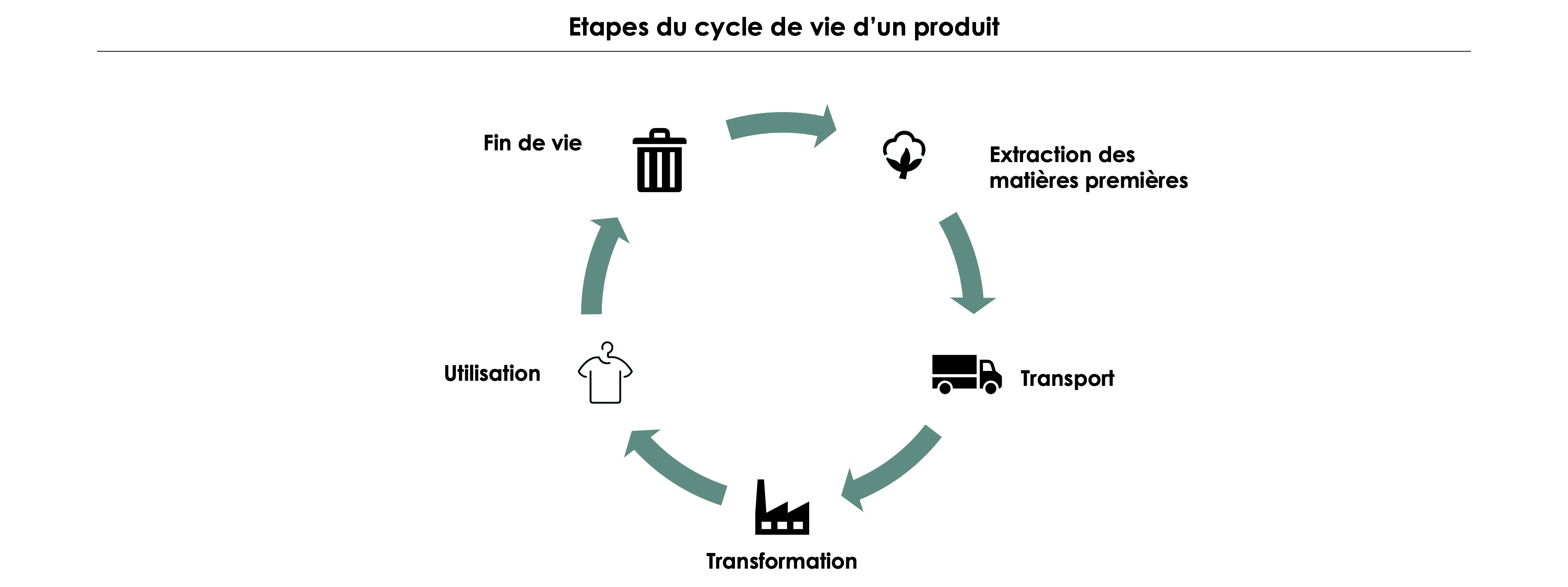 - Ensuite, les scores tiennent compte des impacts sur l’ensemble du cycle de vie du produit : il s’agit de quantifier les impacts du produit depuis les matières premières nécessaires à sa conception jusqu’à sa fin de vie, en passant par sa fabrication, son transport, son usage.