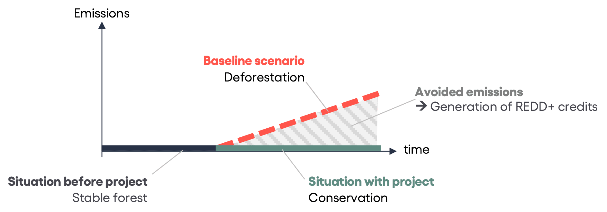 Why such a gap between Verra's predictions and reality? First of all, it is important to understand that REDD+ carbon credits are issued in proportion to the amount of deforestation avoided, i.e. the difference between the situation where the forest is protected and an alternative situation, called the "reference scenario", which would have taken place in the absence of protection. Credits are then generated based on the amount of carbon that was not emitted into the atmosphere as a result of funding the conservation program.