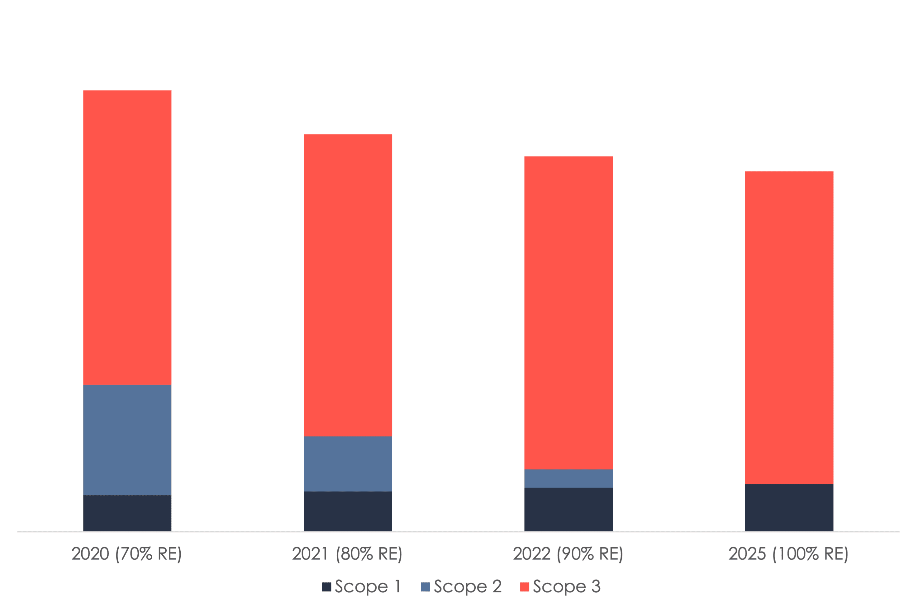 Reductions reported in the past years are almost exclusively attributable to Scope 2 reductions, which comes as no surprise. Indeed, as highlighted previously [13], the hyperscalers’ main strategy to reduce emissions over the past years was through the purchase of electricity labeled as ‘renewable’, thanks to contracts such as power purchase agreements (PPAs) or unbundled guarantee of origin (GO) certificates. It is to be noted that hyperscalers also lack transparency on the nature of these ‘green electricity’ contracts, not disclosing the proportion of electricity coming each type of contractual instrument, although this information is required by the CSRD.