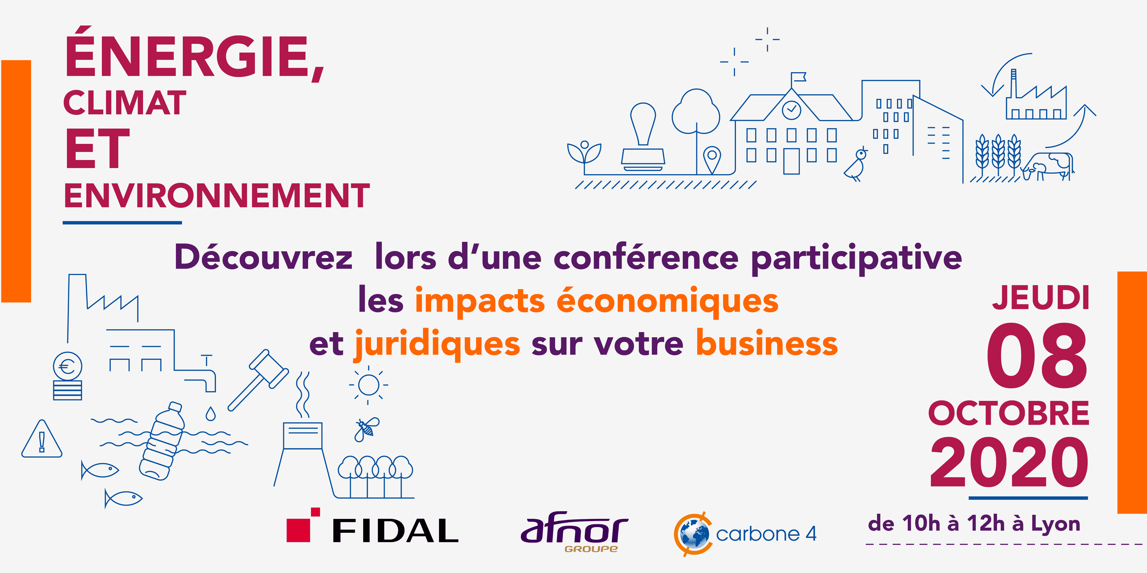 Le 8 octobre matin à Lyon de 9h30 à 12h, le groupe AFNOR, le cabinet d'avocats Fidal et Carbone 4 proposaient une conférence participative, afin de présenter des solutions efficaces pour répondre aux nécessités environnementales tant sur le plan économique que juridique.