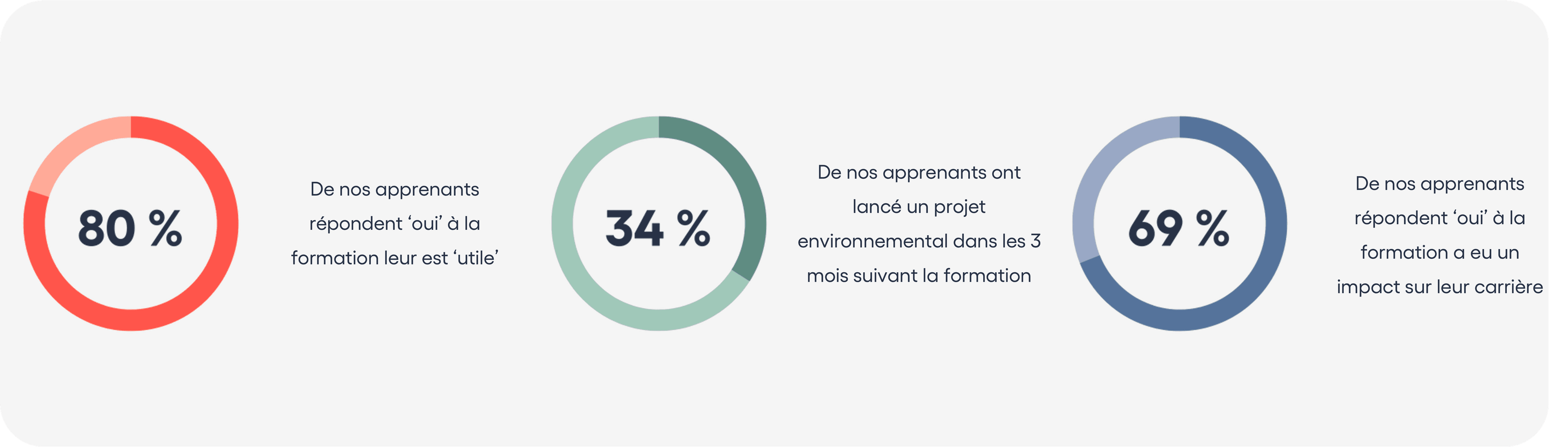 2ème chiffre clé : 34% de nos apprenants ont lancé un projet environnemental dans les 3 mois suivant la formation.